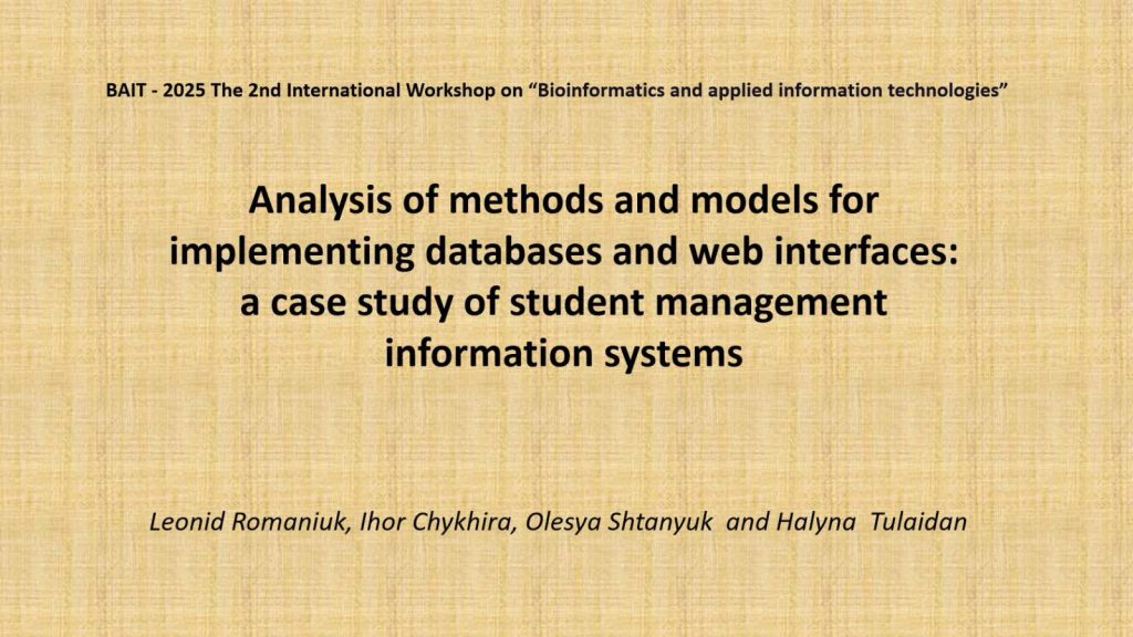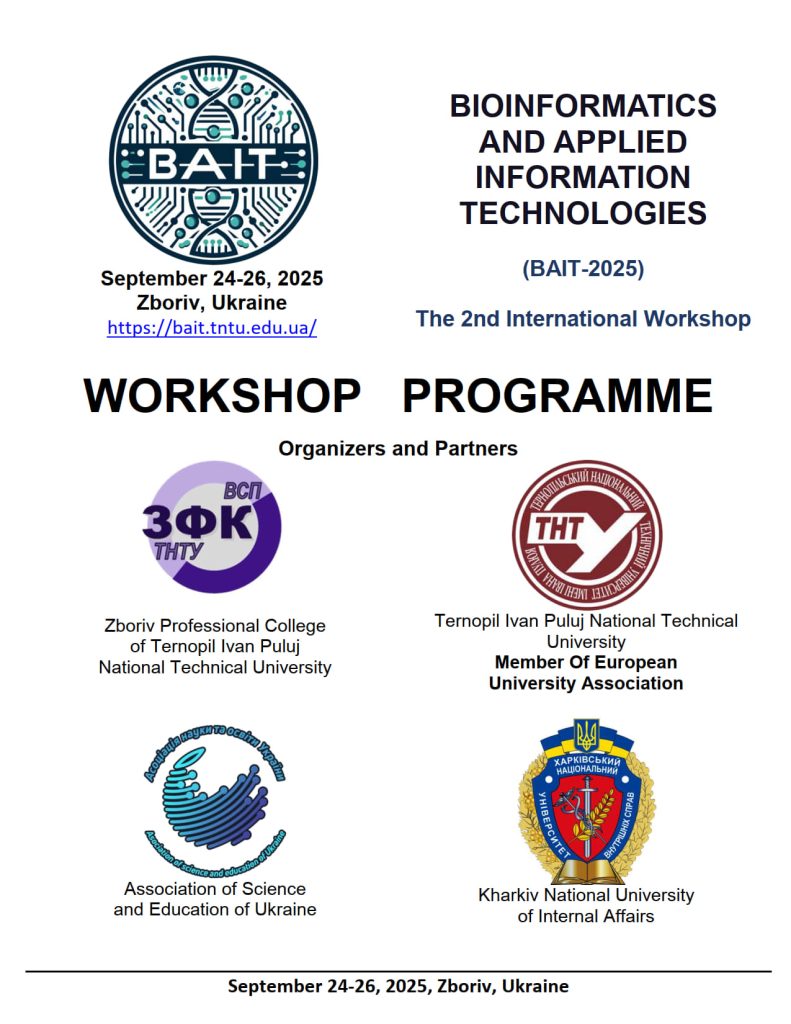24-26 вересня 2025 року в ТНТУ відбулася IІ міжнародна наукова конференція «Біоінформатика та прикладні інформаційні технології» (BAIT-2025). The 2nd International Workshop on “Bioinformatics and applied information technologies”